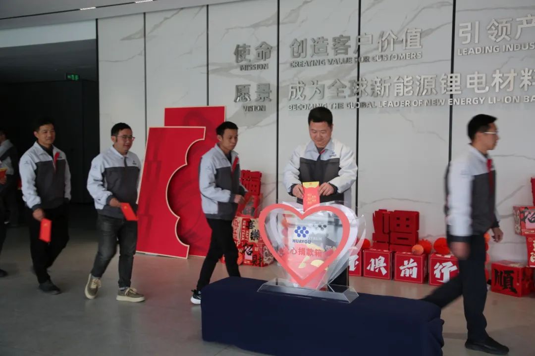 以愛之名,聚光而行。蛇年正月初八,新年開工第一天,新能源產(chǎn)業(yè)集團桐鄉(xiāng)區(qū)域舉辦“華友新能源產(chǎn)業(yè)集團愛心基金”募捐活動。在公司高級副總裁、新能源產(chǎn)業(yè)集團總裁陳要忠的帶領(lǐng)下,廣大干部員工積極相應愛心募捐活動?;顒蝇F(xiàn)場,一個個紅包伴隨一份份愛心投入募捐箱。