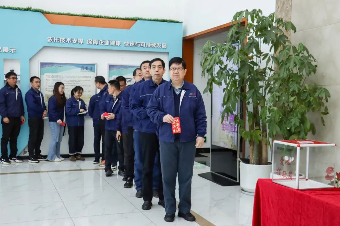 2025蛇年新氣象,公司總部愛心募捐活動在華友研發(fā)大樓一樓大廳舉行,早上八點剛過,來自各部門的干部員工在大廳就已排起隊伍。