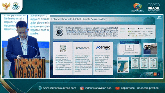 11月10日至21日,《聯(lián)合國氣候變化框架公約》第三十次締約方大會(COP30)在巴西貝倫(Belém)舉行。全球約193個國家/締約方,逾56000人次參與了本次活動。華友作為印尼鎳下游產(chǎn)業(yè)化轉(zhuǎn)型的“核心推動者”之一、綠色減碳優(yōu)秀qm球盟會·(中國)球盟會代表,受印尼環(huán)境部邀請參加本次活動,響應大會主題。