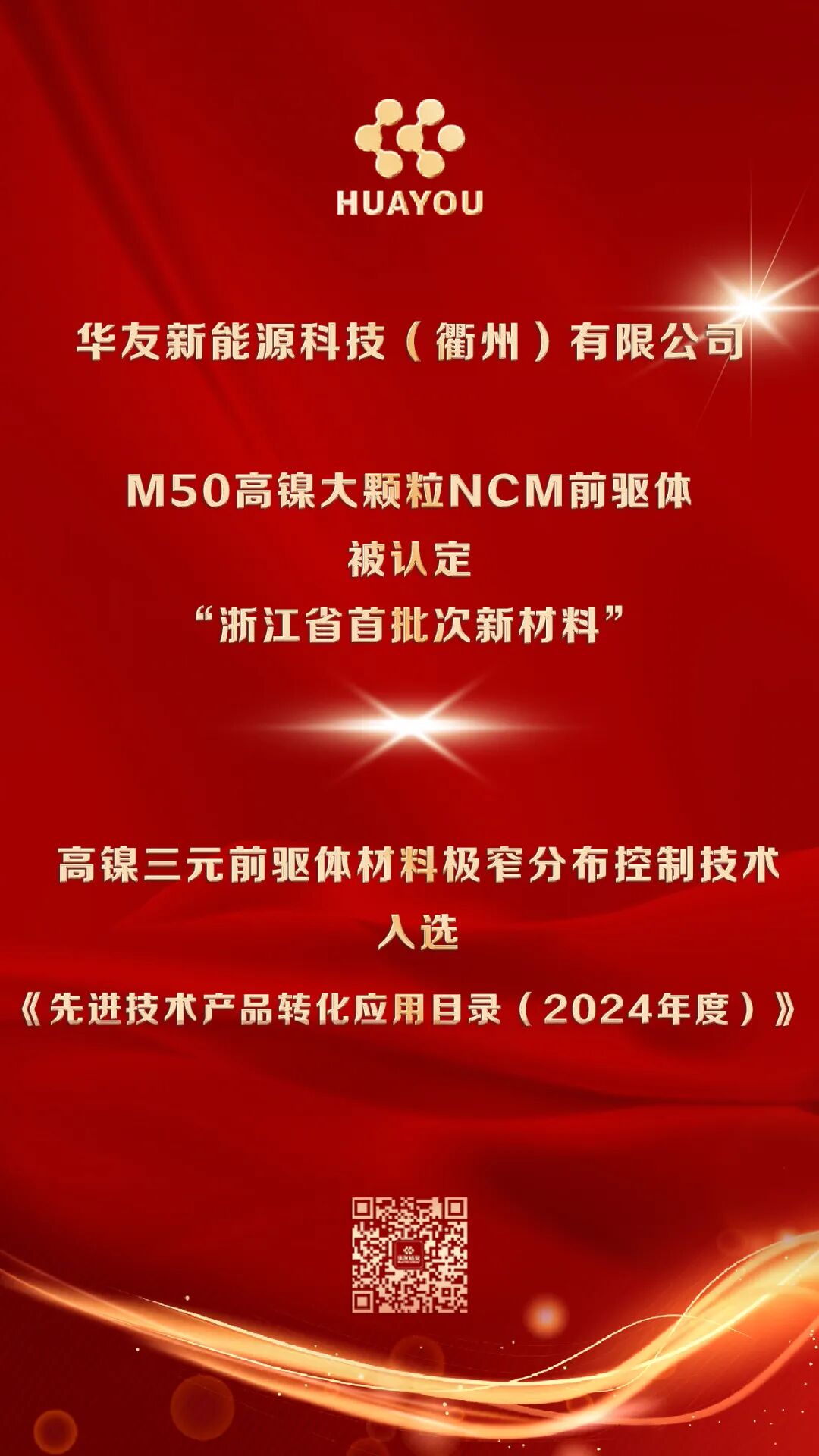 近日,浙江省經(jīng)濟(jì)和信息化廳發(fā)布《2025年度浙江省首批次新材料認(rèn)定名單》,華友新能源科技(衢州)有限公司自主研發(fā)的“M50高鎳大顆粒NCM前驅(qū)體”成功入選,被認(rèn)定為“浙江省首批次新材料”,標(biāo)志著公司在高鎳材料領(lǐng)域的創(chuàng)新能力獲得省級權(quán)威認(rèn)可。