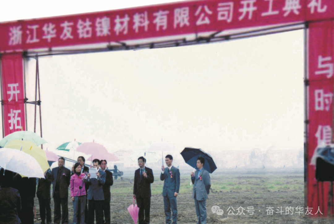 2002年,冬月的清晨,華友人擎舉著“開拓進取 與時俱進”的旗幟,腳踏泥濘,從鄉(xiāng)村走進城市,開啟新征程。